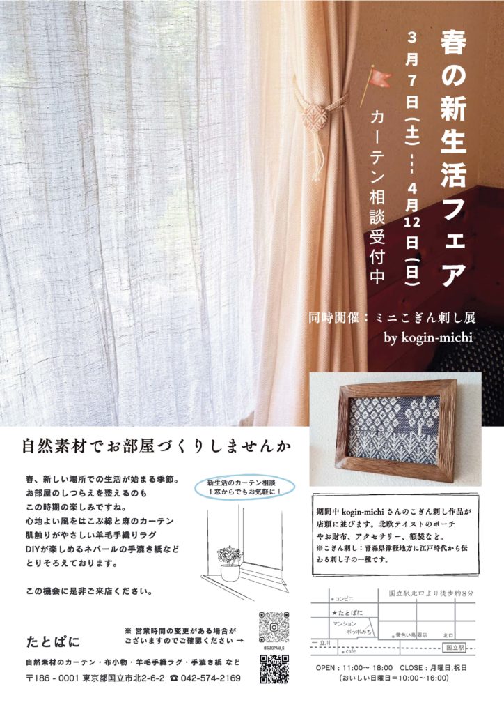 《 春の新生活フェア & ミニこぎん刺し展 》 3月7日(土) ~ 4月12日(日) 予定しております。